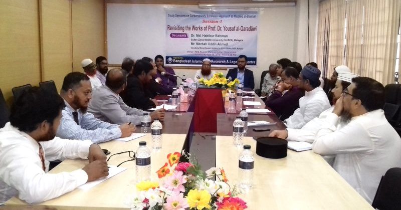 গতকাল রবিবার ২৫ আগস্ট-২০১৯, পল্টনস্থ এবিসি মিলনায়তনে বিকেল ৫ টা থেকে রাত ৯ টা পর্যন্ত বাংলাদেশ ইসলামিক ল’ রিসার্চ এন্ড লিগ্যাল এইড সেন্টার-এর উদ্যোগে শিক্ষাবিদ, ব্যাংকার, গবেষক ও উলামাদের উপস্থিতিতে “আধুনিক সমস্যা সমাধানে মাকাসিদুশ শারইয়্যাহর প্রয়োগ: ড. ইউসুফ আল-কারজাভীর নির্দেশনা” শীর্ষক স্টাডি সেশন এবং “বাংলাদেশের ইসলামী ব্যাংকিং এ প্রোডাক্ট উন্নয়ন ও উদ্ভাবন” সম্পর্কিত মতবিনিময় সভা অনুষ্ঠিত হয়। ইসলামিক ল’ রিসার্চ সেন্টারের-এর নির্বাহী পরিচালক শহীদুল ইসলাম-এর পরিচালনায় উভয় সেশনে সূচনা বক্তব্য রাখেন সুলতান যাইনুল আবেদিন বিশ্ববিদ্যালয় মালয়েশিয়া-এর সহকারী অধ্যাপক ড. মুহাম্মদ হাবীবুর রহমান ও ইসরা মালয়েশিয়ার সিনিয়র গবেষক জনাব মেসবাহ উদ্দীন আহমেদ।